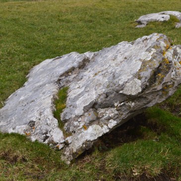 This defines the limit of a flat platform upon which is a circle of over forty large slabs of limestone lying on the ground and pointing towards the centre. At this point are several larger stones, the remains of some previous structure.Gaps in the mound, coincident with filled-up portions of the ditch, mark the positions of two entrances at the NNE and SSW points respectively. The prupose of all this is unknown. It can only be surmised that it was the scene of some ritual which took place on important occasions when possibly patriarchal groups from far and near assembled and looked on with awe from the mound which served as their grandstand. Such a monument also suggests that late Neolithic communities lived an organised life with an established social and economic order of which Arbor Low can be taken as a symbol.